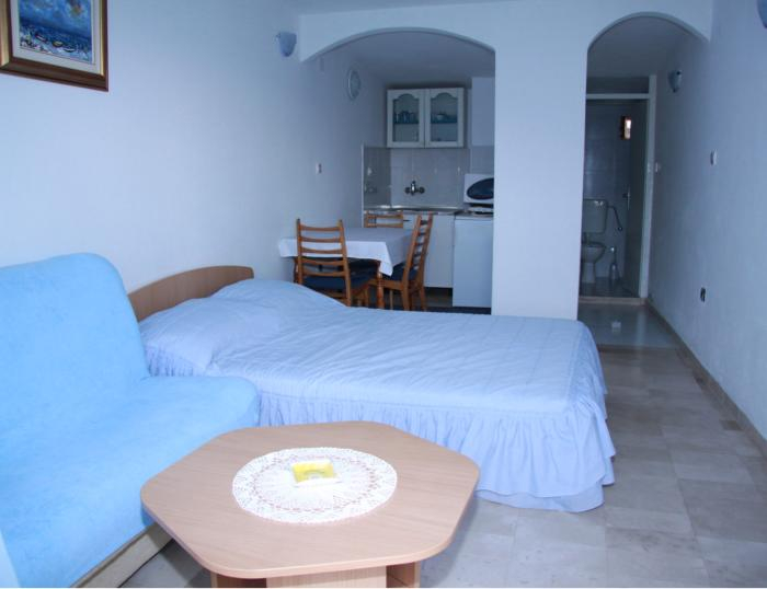 Bračni krevet Trosjed na rasklapanje Televizor Kuhinja Kupatilo Balkon Klima Wiffi Površina ukupno 30m2 Ukupno prima 2+2